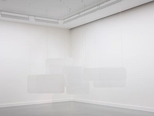 Carla Arocha, Screen, 2005. Installation, plexi, stainless steel, 216.4 x 350 x 150 cm.